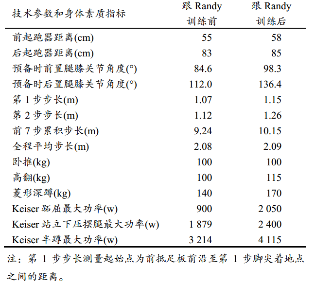 结果发现,苏炳添体能方面存在股后肌群和踝关节力量不足、发力速率偏慢等问题,技术上有起跑姿势不合理、前7步步长偏小、扒地技术不合理、全程呼吸和速度节奏不佳的情况。